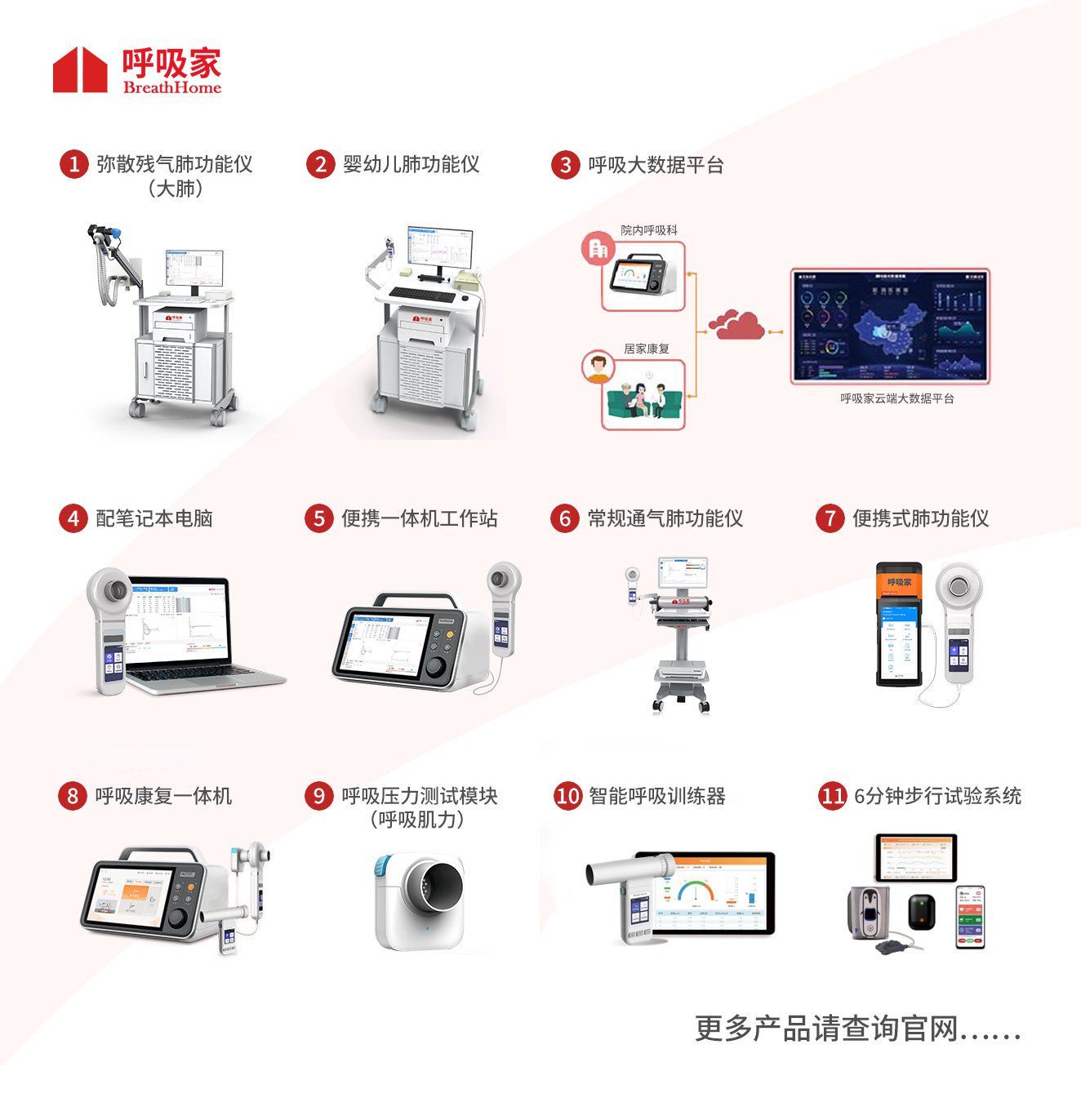 “呼吸家”是国内最早专注肺功能测定及传感器自主研发的国产品牌,已通过国内外主要的产品质量认证和医疗器械认证,拥有设计、研发、生产到服务的完善体系。为客户提供呼吸系统筛查、诊断、康复、大数据和患者居家监测的全流程解决方案。产品已服务国内外上万家医疗机构和上百万呼吸慢病患者。